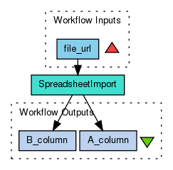 This workflow is designed to import a spreadhseet from a local computer. The imported spreadsheet is parsed to extract the first two columns, A and B, for all rows in the spreadsheet. These are returned as two separate outputs.